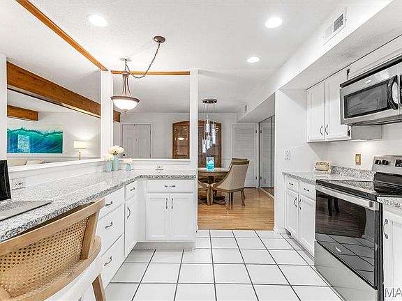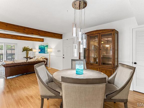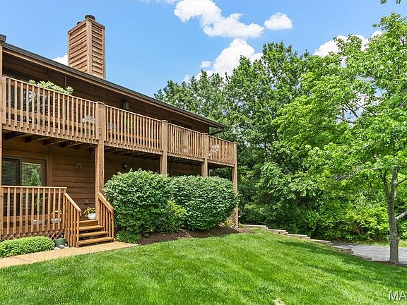 Chesterfield main floor 2 bedroom/2full bath condo w/attached garage & main-level easy-assess assigned carport space. Affordable condo ($290/m) fee. In unit laundry w/full-sized washer/dryer (stays). Open concept living (1500 sqft) w/large open kitchen, separate dining, family room w/wood-burning fireplace. Primary bedroom suite w/private full bath & two closets. Kitchen w/ceramic tile, granite counters, built-in stainless microwave, refrigerator (stays), smooth cooktop range & dishwasher. All electric. Main full bath & 11x14 second bedroom. Luxury vinyl flooring & ceramic tile. Natural cedar accent beam compliments neutral colors. Awesome full-length covered deck has peaceful tree-line view & slider to family rm & primary bedroom. Storage unit. Top-rated Claymont, West Middle & Parkway West High. Enclosed secure entrances & enclosed stairs. Close to shopping & minutes to HWY 64/40. Condo fee covers some insurance, landscaping, snow removal, sewer, trash, windows & exterior maintenance/cleaning. Buyer backed out…no fault of seller.