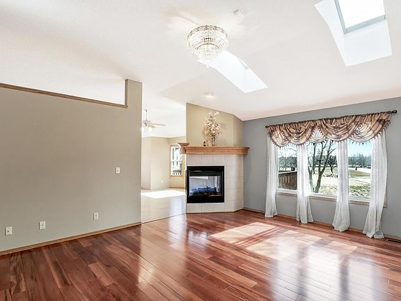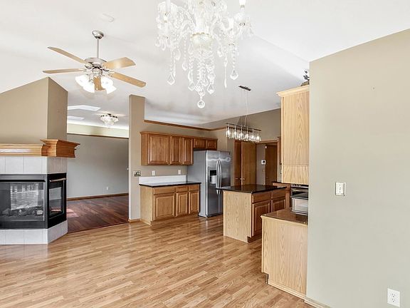 Beautiful Randy Dean home with a complete view of 14th & 15th fairways, tee boxes & greens. You enter the circle driveway and see a fountain & landscaping around it to welcome you. When entering the home you will see the golf course from the large windows in the living area with a see through, angled fireplace giving you a warm ambience when lit in the winter months. The kitchen also has a view of the golf course with a large deck outside. Kitchen is complete with a desk, eating bar, island and pantry. There is a separate nook for a table & chairs. Downstairs is where the party starts! You will see a large screen and seating area and a beautiful bar that will complete the fun. Don't wait- it wont last long!