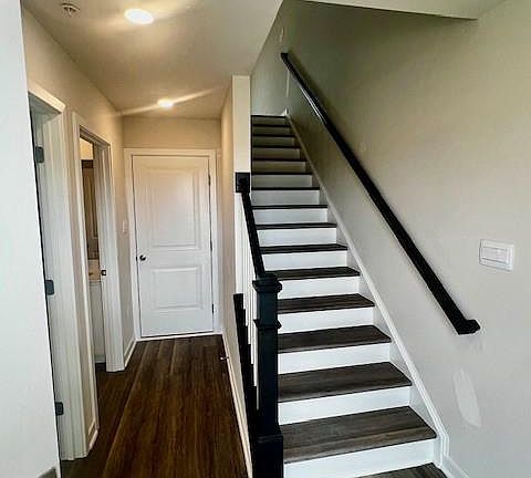 MOVE IN READY! This 3-story open and contemporary middle unit floorplan encompasses 4 bedrooms, 3.5 baths, and a 2-car rear load garage. Thoughtful design and modern luxury are uniquely embodied in this townhome plan, which features 1,763 sq ft of living space. This home offers a spacious main level eat-in kitchen with upgraded white cabinets, quartz countertops and stainless-steel Whirlpool appliances. Recessed lighting and blinds are provided throughout the home as well. The upper level boasts a private laundry closet and stylish primary bedroom, complete with a walk-in closet and dual vanities. Two spacious additional bedrooms are also included on the upper level. The lower level features a finished recreation room that can double as a 4th guest suite, along with a full bath. NO CARPET in this home provides a more luxury feel, not found in most townhomes. Black windows, gutters and garage door presents this home with stunning curb appeal to boast an urban and modern feel that is sure to stand out. Conveniently located across the street from tons of shopping and entertainment options. Incredible rates and closing incentive options available with the use of DHI Mortgage.