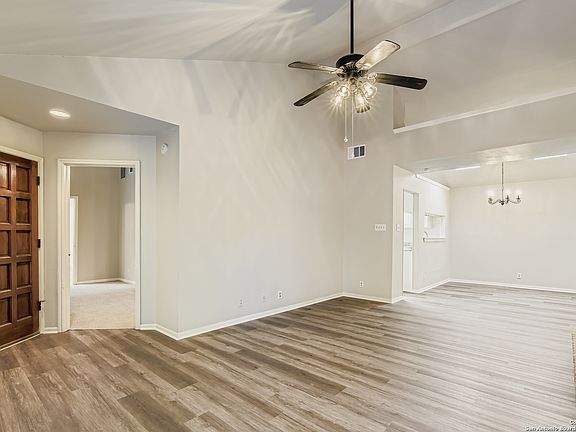 Welcome to this beautifully maintained, spacious single-story home located in a great community. This 3-bedroom, 2-bathroom residence seamlessly combines comfort and functional design making it a great home. Step inside to discover soaring high ceilings and abundant natural light streaming through skylights, highlighting the home's impressive architectural details. The living room features a dramatic double-height ceiling and a brick fireplace, creating a warm and inviting centerpiece. A cool, designer-neutral color palette flows throughout, complementing the tasteful tile and wood-look laminate flooring.The eat-in kitchen boasts white cabinets and a thoughtful layout, offering an open overlook to the dining room-ideal for entertaining or keeping the family connected. The primary bedroom is a serene retreat with a massive ensuite bathroom and two spacious closets, while the secondary bedrooms are thoughtfully positioned within the floorplan to ensure privacy and comfort. Step outside to a perfectly sized backyard, great for outdoor gatherings or quiet relaxation. Located near schools, shopping, and community amenities, this home offers both convenience and lifestyle. From its decorative lighting to its smartly designed living spaces, every detail has been carefully considered to provide a home that is as functional as it is beautiful. This home truly offers the ideal blend of space, style, and location-why wait? Make it yours today!