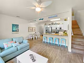 STELLAR LOCATION!! Beautiful 3B/2B 1300 sq ft beach themed townhome just a 5 min walk to the sand! Heated pool located around the corner. Gorgeous channel view from the upstairs queen bedroom, adorable patio, 3 bedrooms PLUS a Queen pullout, PLUS a daybed area with a cute checkers game table for the kiddos! FIVE Flat screen TVs to watch after a day at the beach! Plenty of seating with a huge granite island with 4 bar stools, 6 seat dining table bench, love seat and sofa.Dogs welcome w/approval & pet fee. Located near shopping, restaurants and more! House rules and lease agreement required. Lease available until March 1, 2026. Owner pays for cable, wifi, trash and will also pay for gas and electric with reimbursement according to fee schedule. Limit 2 pets (dogs only). No smoking of any kind allowed to include vaping or drugs etc. At the time an applicant is provided with a rental application, the landlord shall make available to the applicant printed notice of the landlord's tenant selection criteria and the grounds for which the rental application may be denied, including the applicant's: (1) criminal history; (2) previous rental history; (3) current income; (4) credit history; or (5) failure to provide accurate or complete information on the application form. Application fee is $65. Signed lease is required along with signed HOA rules and regulations agreement.
