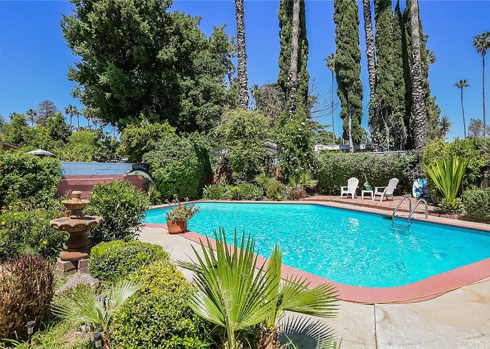 This Stunning Property is highlighted by a Fantastic Resortlike Backyard featuring sparkling pool, vibrant lush landscaping and 2 patio areas ideal for outdoor entertaining ! Beautifully Remodeled 3 bedroom +3.5 Bathroom + Home Office/convertible den (Could easily function as 4th bedroom and provides direct access to Garage!) Updated kitchen boasts newer cabinets, granite countertops and tile floors. Spacious living/Dining room includes stunning Newer hardwood floors And Fireplace! All Bathrooms are Updated and Modern, including the backyard bathroom with shower very close to the Pool! Large Laundry room adjacent to Kitchen! Located in a wonderful pocket of Van Nuys (Kester Ridge) with easy access to the 405 Freeway, this property is The Best Value in the Area!!