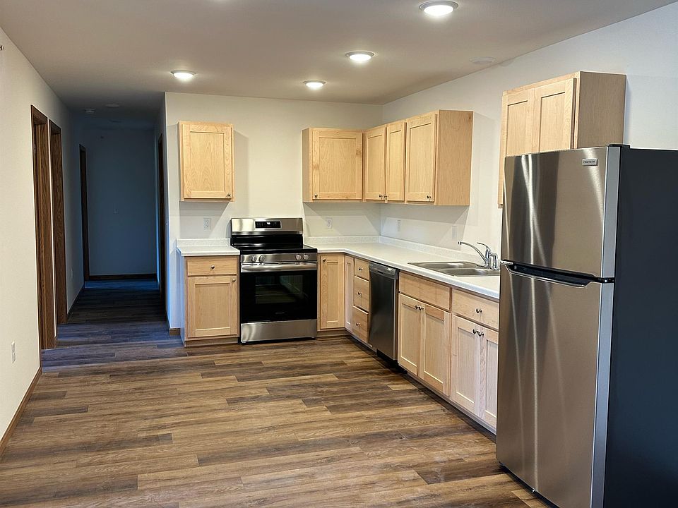 The Greenfield Estates Apartments has a modern 3 bed/2 bath that is ready to rent! Greenfield Estates has a modern touch with private entry into your apartment, in-floor radiant heating and a washer and dryer in all units. With custom-made Amish cabinets and stainless-steel appliances, the kitchen is sure to win your heart. Included in the monthly rent price is the in-floor heating, attached garage, garbage, and recycling. The location is just minutes away from shopping, dining, and recreational areas. What's required to secure an apartment at Greenfield Estates? 1. An approved application where we look for good rental history, good job history and a credit score of 600+ 2.
