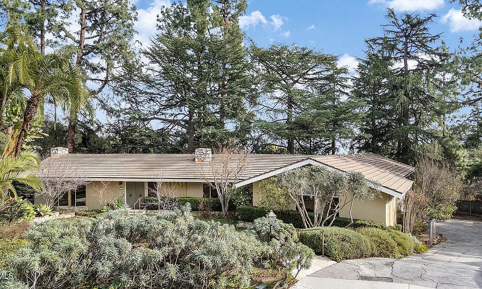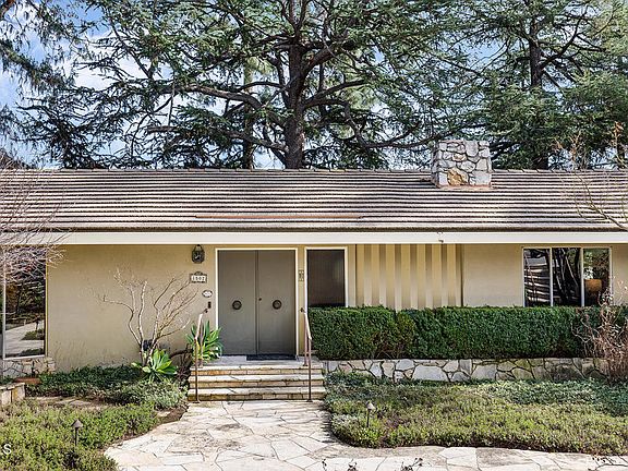 Tucked away at the end of a peaceful cul-de-sac, this stunning mid-century ranch home has been lovingly maintained by its original owner since 1960. Situated on a sprawling lot in the Alta Canyada neighborhood of La Canada Flintridge, this 4-bedroom, 4-bathroom residence offers a rare opportunity to own a piece of architectural history. Designed with classic mid-century elements--clean lines, wood-paneled walls, and several glass sliding doors--the home seamlessly blends indoor and outdoor living. As you enter, you'll be captivated by the home's distinctive architectural elements, including striking rock facades, inspiring wall coverings and timeless custom design treasures. Enjoy the tranquility of nature in the formal living room and dining room, as well as the refined details, wood details and rock fireplace. The bright and functional kitchen opens to a comfortable family room with fireplace, wet bar with custom shelving, and sliding doors to the large patio. There are four bedrooms on the main level, including a primary suite with a relaxing retreat, large closet spaces, bathroom, and refreshing balcony. The main level also includes a large laundry room, half bathroom, and full bathroom. The lower level living features a den/office with 3/4 bathroom and additional storage with access to the oversized two car garage. This sweeping backyard boasts the most magnificent deodar trees with grass lawns and multiple entertaining areas. The lush landscape surrounds the entire property with ample parking and convenient access to the garage. Experience the perfect blend of mid-century style and natural splendor in this extraordinary foothill retreat. This is a rare opportunity to own a classic mid-century home in a prime location and award winning La Canada schools!
