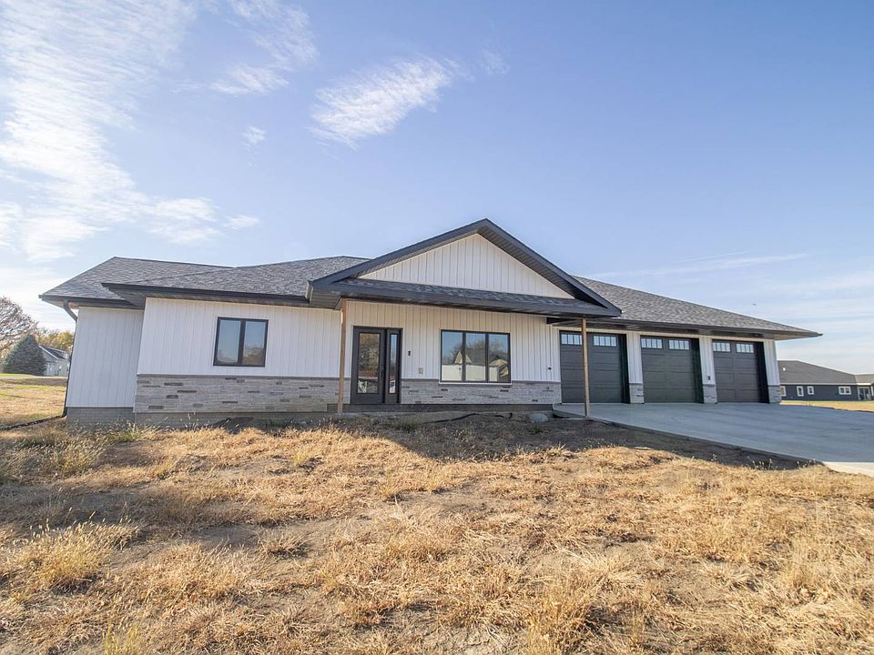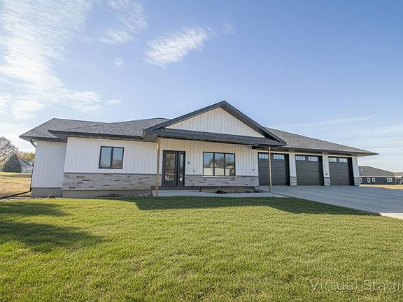 Welcome to this beautiful new ranch-style home in the growing community of Hull, Iowa! Built in 2025, this thoughtfully designed 3-bedroom, 2.5-bath home combines modern finishes with practical comfort, offering an inviting space for everyday living and entertaining. Step inside to an open-concept layout featuring a bright, spacious living room with a cozy fireplace, seamlessly flowing into the kitchen and dining area-perfect for gatherings with family and friends. The primary suite provides a relaxing retreat with a walk-in closet and a luxurious en suite bathroom featuring a soaker tub and tile shower. Two additional main-floor bedrooms share a full bath, and a convenient half bath serves guests. Enjoy the ease of main-floor laundry and a spacious three-stall garage with a bonus area-ideal for a workshop, storage, or hobby space. The unfinished basement offers endless potential for future living space, additional bedrooms, or a home gym. Set on a generous 130' x 144' lot, this home features LP Smart Siding, an asphalt roof, gas furnace, and central air conditioning for year-round comfort and efficiency. If you're looking for modern comfort, small-town charm, and quality craftsmanship, this brand-new Hull home is the perfect fit.