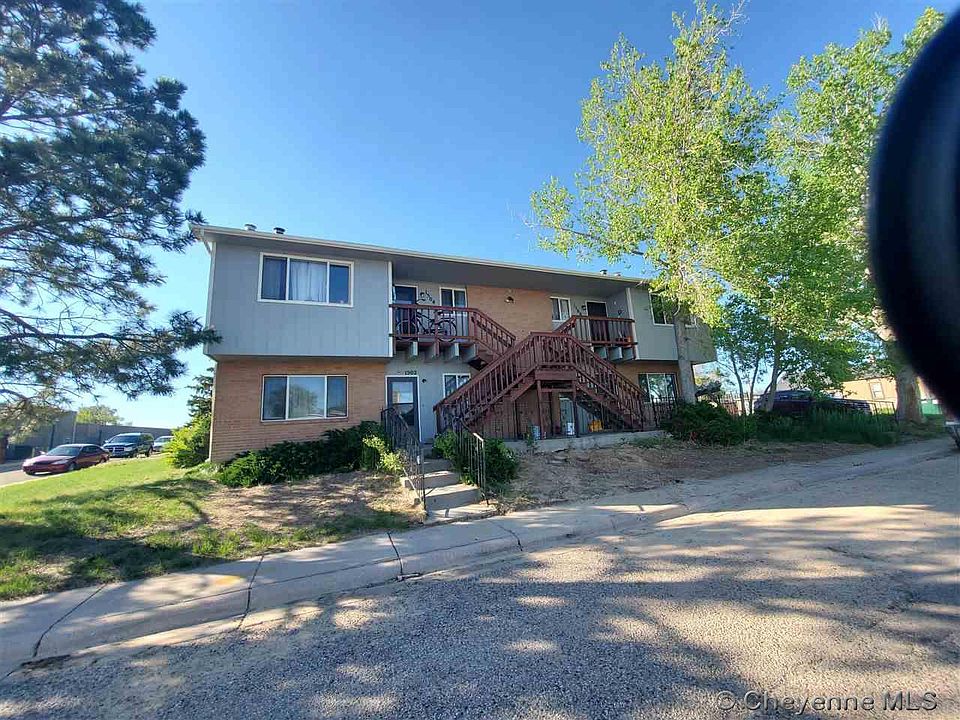 4-plex. Each unit has 2 bedrooms, 1 bath, a woodstove and washer and dryer. Off street parking lot. Located on a corner lot.