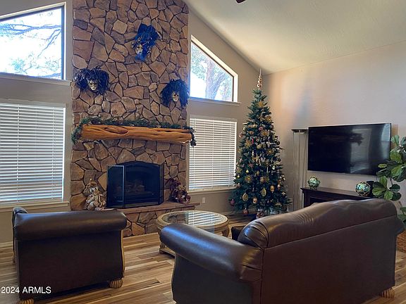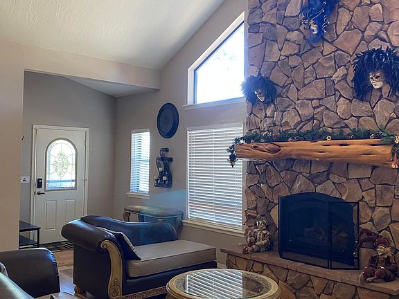 Beautiful chalet style single-level floor plan with a MASSIVE attached three-car garage with 13ft ceilings - great for large vehicles, boats, or work/storage areas. The great room features lots of natural light, vaulted ceilings, a beautiful fireplace with stone, & hardwood flooring. You will find a cozy master bedroom with a full bath and walk-in closet, and a roomy second bedroom. and a huge additional room that can be used to sleep or entertain guests. The huge 0.75-acre lot is well cared for with landscaping and much more. NOTE: The owners added a beautiful sauna that is in the process of being finished - contact for more info.