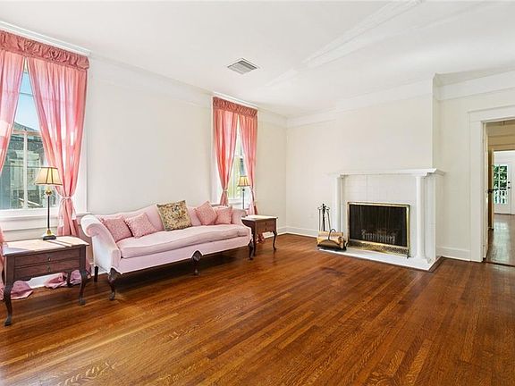 Step inside from the tree-lined street to a welcoming sunroom with handmade French tile floors, setting the tone for the charm and craftsmanship found throughout the home. The main level features rich hardwood floors, elegant ceiling medallions, a Waterford crystal chandelier, and a working wood-burning fireplace—ideal for cozy evenings and classic New Orleans ambiance.