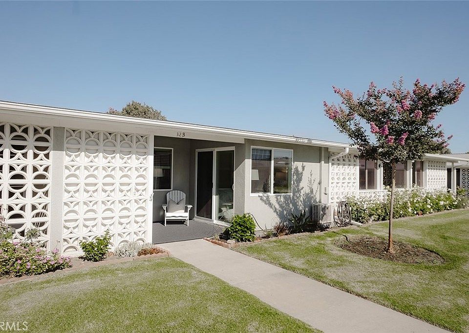 Welcome to Studio 32b; a stylish and chic 1 Bedroom-1 Bath Southwest facing unit! Extended with a patio, it is just a delightful place to call home. The unit is set far back from adjacent units and has its own private entrance and walk path. Remodeled in 2022, some NEW features added to home included bedroom expansion with a walk-in closet, Dual Pane Windows with newer wood faux blinds, a Dual Pane Slider Door off bedroom onto large patio and SMOOTH CEILINGS! NO cottage cheese here folks! There is a NEWER Fujitsu Halcyon Heat/Air pump and NEW high-quality vinyl plank floors throughout with NEW Fresh Painted walls. The kitchen boasts a NEW GE Smart Oven, and NEWER appliances include an Empava Induction Glass Cooktop, built-in KitchenAid Microwave, sleek LG Refrigerator, Stainless Frigidaire Dishwasher with White Cabinetry, and counters with a Stainless Sink accented by a retractable spray faucet. Included is a NEWER modern credenza style Murphy Bed for overnight guests without taking up any additional space in the home. Incredibly unique and practical. Another bonus includes a Samsung 55” TV on a Swivel Wall Mount with a 21" Bose Soundbar!! Truly a must-see unit. Your bath features a NEW Highboy, NEW Solvang Light Fixture, White Cabinetry and Shower with Bench Seat. The bedroom has a walk-in closet with overhead storage and built-in shelving. The bedroom is spacious enough to fit a Queen Bed Suite with plenty of room left for a desk. The room is topped off with a NEWER Home Decorator 52” Integrated LED Ceiling Fan. From the bedroom you step out to your patio that is fitted with NEW in/outdoor carpet and artsy Decor Wall creating a calm, cool space for relaxing with visitors. Buyers seeking a fresh, clean, turnkey living space will want to check this one out! Carport is located super close to the Right at end of walk path; 10 spaces down w/tons of additional Guest Parking *****Carport Bldg. 28 - Space 40***** Easily located in Leisure World’s Mutual 2 with a short walk to downtown Leisure World. Restaurants, shopping, and banks are close to Southgate entrance. This is a 55+ SUPER ACTIVE RETIREMENT COMMUNITY w/24-hour guarded-patrolled security, 200+ activity & Social Clubs, Swimming, Spa, 9 Hole-Golf Course, Fitness Center, Sport Court, Billiards, Amphitheater features Summer Concerts & Holiday Events, 6 Clubhouses, Health Care Center, Pharmacy, Post-Office, Car Wash, Art & Ceramics Room, Wood Shop, Bus System, Library, Day, Excursions and so much more!