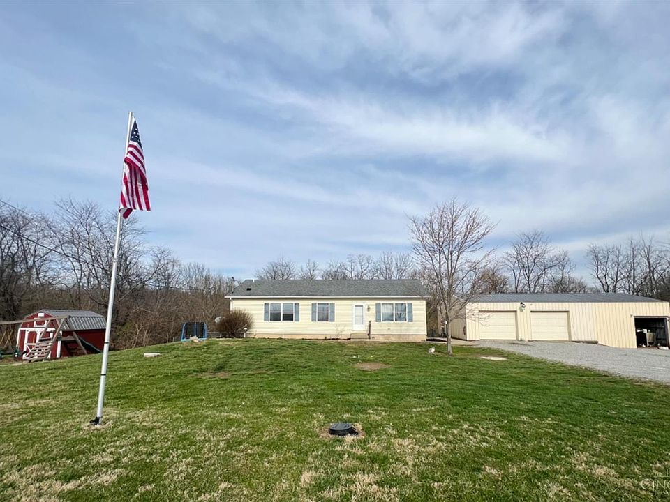 Welcome Home! This home offers 4 bedrooms w/ option for 5th bedroom and 2 full baths. Full walkout basement. 3 car detached garage with fenced in backyard. Beautiful wooded view with a creek. This home is located in Blanchester School District and sits on just under 3 acres. All new flooring on first floor!