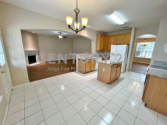 Beautiful 2-story 4/2.5/2 in Corinth! Home is located in Guyer High School district and features 3 living areas and 2 dining areas. Front entry leads to the formal living and dining areas. Family room features a WBFP and is open to the kitchen and breakfast area. Large kitchen with island, built-in microwave, dishwasher, disposal, stove and refrigerator. Split bedroom design with your primary suite on the main floor and secondary bedrooms upstairs with 3rd living area and full bath. Primary suite features a garden tub with separate shower and a walk-in closet. Large fenced backyard with covered patio and storage shed. Full size utility area, fenced backyard, alarm system, sprinkler system and more! This is a MUST SEE