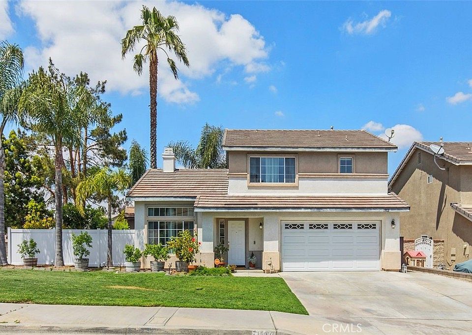 Situated on a corner lot, this delightful residence boasts irresistible curb appeal. As you step inside, natural light floods the formal living room through expansive windows, infusing the space with a radiant glow. The bright and inviting ambiance extends seamlessly to the family room, adorned with numerous windows and a sliding glass door. Flowing effortlessly into the dining room and kitchen, the family room creates an ideal setting for gatherings and entertaining. Step outside through the sliding glass door to discover a covered patio and a lush yard adorned with fruit trees, offering a tranquil retreat for outdoor enjoyment. Convenience meets functionality on the first floor, where you'll find a powder room, laundry room, and direct garage access. Ascend the stairs to the second floor, where three bedrooms await, including the primary suite featuring an ensuite bathroom and a spacious walk-in closet. A built-in desk at the landing provides a versatile space for working from home or completing school assignments. With its charming interiors and inviting atmosphere, this beautiful home eagerly awaits its new owners to fill it with cherished memories.