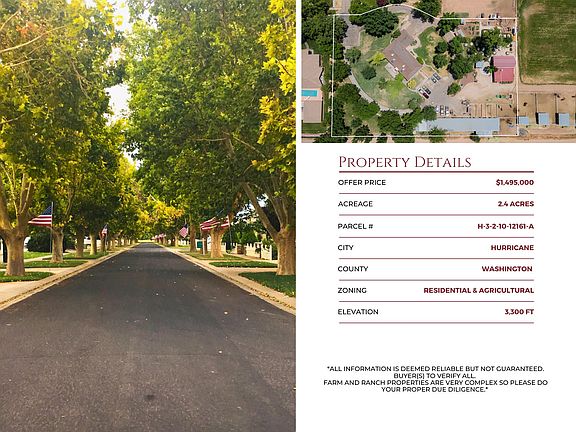 This farm has endless possibilities! Don't miss out on this unique opportunity! Approximately 2.4 acres at the end of the charming sycamore tree-lined street in the highly sought after Hurricane Fields with a 5,548 sq ft house with a 2 bedroom/2 bathroom basement apartment with a kitchen and laundry closet and a separate exterior entrance, detached 672 sq ft casita with 1 bedroom, 1 bathroom, office, sitting room, kitchen and laundry room, a Trapper's Lodge which is a studio attached to the casita through the laundry room, it has a bed in the sleeping area, a sitting area and a 3/4 bathroom. Four indoor, insulated shop bays (one of which includes extra storage area). three of the bays have garage doors and one bay has french doors, a large event barn with a kitchen and two half baths, tack shed, hen houses, chicken coops, full RV hookups with electrical, water and sewer, 5 indoor stables and 3 outdoor stables, large mature trees, grow boxes with drip lines, garden bed area and so much more! Additional 6 acres which includes 5 acres of irrigated pasture and/or a turnout pasture that accommodates seven 40'x70' boarding stalls with covers; 6,000 sq/ft metal warehouse with cement flooring and a new roof, complemented by a 100'x20' lean-to with roll-up doors is available - Ask listing agent for price information *All information is deemed reliable but not guaranteed, buyer to verify all.