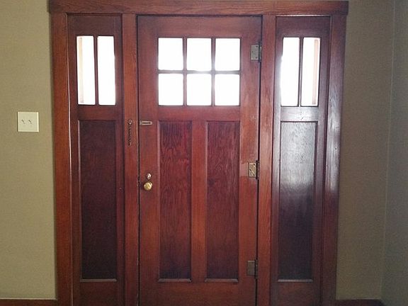 Charming brick bungalow on a corner lot in quiet, established neighborhood. Located one block from major avenue with shopping, restaurants ,medical urgent care, hardware store and car parts/service businesses. The home is sturdy with brick siding, built on concrete foundation, re-plumbed with flex tubing, updated wiring, new water heater, new refrigerator and the existing cook stove is gas. Also, there is a cozy covered front porch, has a full basement with safe room, a 12x18 flex room with walk out through sliders, and a privacy fence. There is a 2 car detached garage. Step inside and discover hardwood floors, beautiful woodwork and solid wood interior doors, freshly painted kitchen with portable island and matching light fixtures in kitchen and dining room. The bathroom is stunning and has a walk-in shower. Very well appointed, interesting details inside and out and the curtains stay.