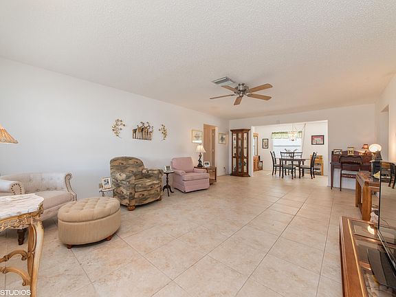 Nicely updated Edgewood Model on quiet dead end street. Views of the E4 canal from front porch. Roof both title and flat replaced 2013. All windows replaced. Impact rated accordion shutters installed 2016 except front porch window has awning. Neutral Tile thru - out. Kitchen cabinetry replaced and updated appliances. Tiled front porch. Hurricane rated Garage Door. Double concrete drive. Master bath has beautiful vanity. Commode replaced. Rheem Seer 16 2/1 ton installed 2014.Extra cabinetry in kitchen. 4 ceiling fans. PAID UP RECREATION LEASE IN FULL>>MOVE IN CONDITION...GREAT LOCATION>GREAT PRICE