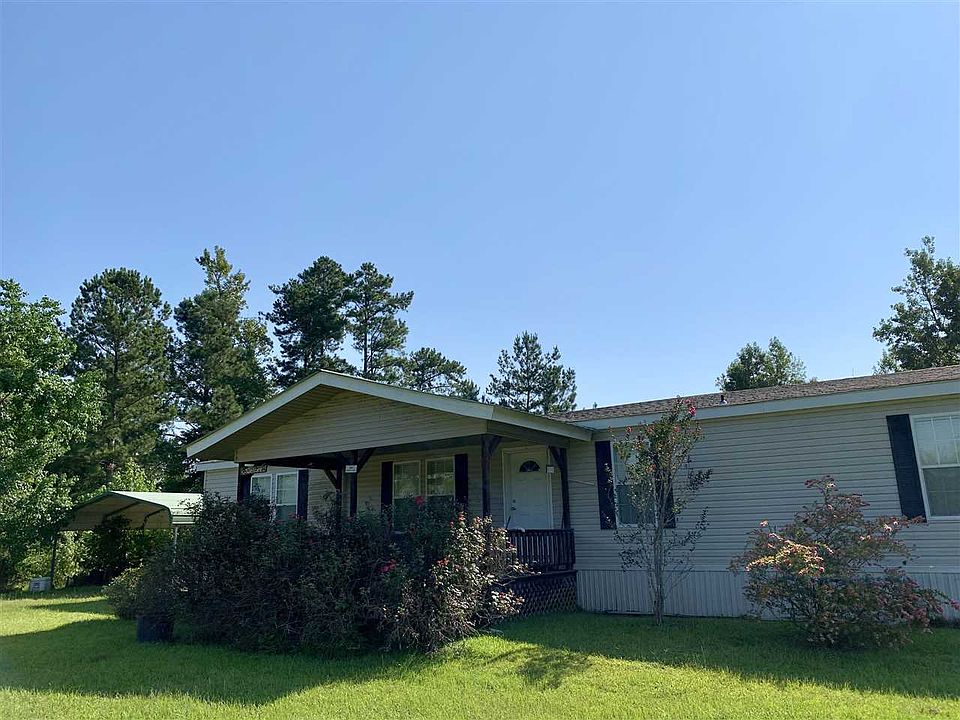 OPPORTUNITY!!! This is a great price on a great home to make your own. This home was a showing model set up at the dealer when new. It features 2x6 exterior construction, extra insulation, floated sheetrock in living areas and a separate family room/den with a wood burning fireplace. Covered porches were added to the front and rear of the home. There are two 2-car metal carports and a metal storage building with a 1-car carport. This home is situated on 4.19 acres. There are an additional 55.19 acres available The roof was replaced in late 2017. This home experienced some water damage due to a supply line in the master bathroom. ServiceMaster was immediately in and removed all floor coverings, cabinetry and sheetrock in affected areas. Drying fans were ran on subfloor and studs and there is no sign of mildew or odor from this event. You can rebuild this as you wish. Save money and DIY making your dream, not someone else's.