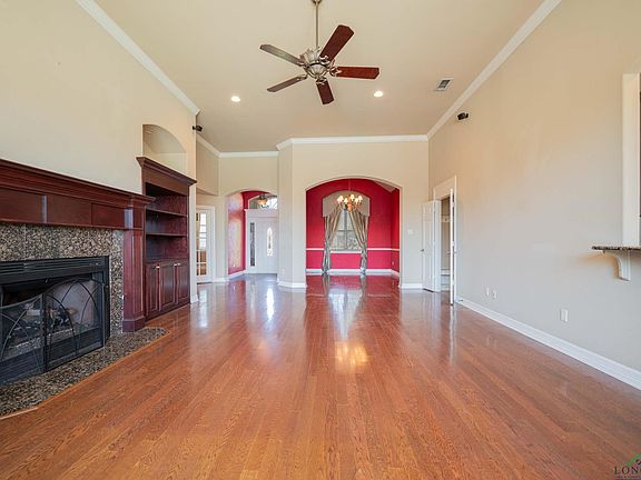 Nestled in the highly sought-after Fairway Oaks subdivision and located within the Longview Independent School District, this exceptional home combines elegant design, luxurious amenities, and an unbeatable location. From the moment you arrive, the meticulously landscaped front yard and charming exterior make a lasting impression. Step inside to find a spacious, thoughtfully designed interior offering 3 bedrooms, 2.5 bathrooms, and a 3-car garage - perfectly suited for both everyday living and entertaining. At the heart of the home lies a chef-inspired kitchen equipped with premium appliances, sleek countertops, and ample cabinetry for all your culinary needs. Just off the kitchen, a sunlit breakfast nook provides the ideal space to enjoy your morning coffee while taking in views of the backyard. The inviting living area features a cozy fireplace and panoramic views of the lush backyard, creating a relaxing environment for both quiet evenings and lively gatherings. Retreat to the luxurious primary suite, complete with a spa-like en suite bathroom featuring a soaking tub, walk-in shower, dual vanities, and two spacious walk-in closets. Two additional guest bedrooms are connected by a Jack-and-Jill bathroom, offering both convenience and privacy. A versatile game room includes a closet (currently used as a wet bar), making it a great option for a fourth bedroom, home office, or media space. Step outside into your private backyard oasis, where a resort-style pool and spa with a mesmerizing waterfall feature await. Whether you're hosting guests or enjoying a quiet afternoon, the expansive patio area is perfect for outdoor dining, sunbathing, or poolside entertaining. This home truly offers the perfect blend of luxury, comfort, and community. Don't miss your opportunity to make it yours - schedule your private tour today and start living the lifestyle you’ve always dreamed of.