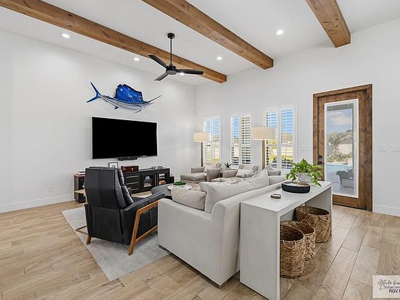 Welcome home to this stunning 4-bedroom, 3.5-bath retreat offering 2,699 sq. ft. of style and comfort. The open layout showcases warm wood beams, plantation shutters, and large windows that give the space a refined yet inviting feel. The kitchen is a showpiece with custom cabinetry, a natural gas stove, and a walk-in pantry with abundant shelving and built-in vegetable drawers. The primary suite offers a relaxing spa-style bath and a spacious walk-in closet with built-ins. Step outside to your private backyard oasis featuring a sparkling pool, lush landscaping, and a covered patio made for entertaining. With a Sono sound system, Generac generator, and sprinkler system, every detail is designed for easy living. This home offers the perfect blend of luxury and everyday comfort.