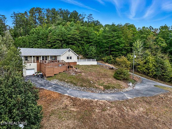 Don't miss out on this spacious home with enchanting views! There are endless possibilities with this 3br/2.5b home in Wears Valley situated on 3 acres. This is a unique property with easy access and no steep roads! The interior of the main house features a spacious kitchen equipped with stainless steel appliances, pantry, snack bar, eat in dining area, etc. Oversized living room has a stone accented wood burning stove and vaulted ceilings. The bedrooms are spacious with double closets. The master bedroom has hardwood floors and double closet, jet tub with tiled shower, etc. The covered front porch is perfect for a hot tub, and the private deck is right off of the of the living room. The garage has already been converted into a huge game room/bonus room with pool table, which provides ample opportunity for entertaining friends and family! The property is set up with an oversized log shed building that has been created as an extra living space or mother-in-law suite. Electric and water has conveniently been installed and has a private deck. Once completed this building provides a nature escape for those lucky enough to stay here.