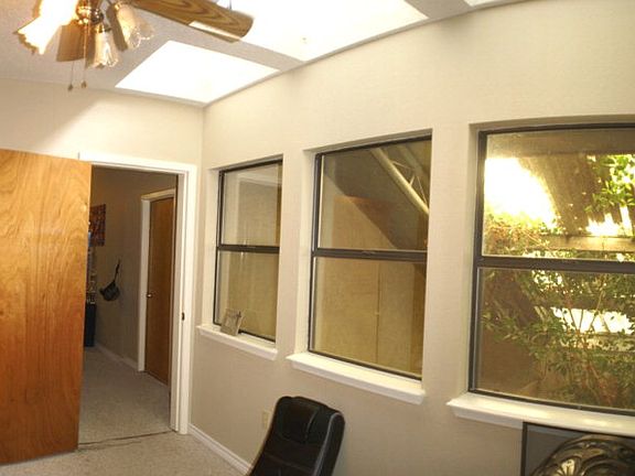 Metal roof and fence replaced in 2014. Enter through the tranquil atrium with lovely fountain. Passive solar home, walls of windows, each bedroom has own bathroom. Massive storage or walk-in closet for upstairs fourth bedroom, generous laundry room off garage with separate entrance /exit to pool area. New tile and baseboards downstairs. Dark Pink Bougainvillea in atrium is two stories tall!