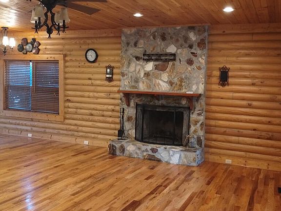 Absolutely gorgeous log cabin on 1.52 acres! Private and completely fenced in. Nice stone fireplace, beautiful hardwood floors
