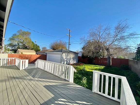 This sensational home is nestled in Van Nuys and just 1 block away from Sherman Oaks. Lush landscaping, large driveway, and beautiful porch enhances its curb appeal. Open the front door and welcome home. This newly upgraded 1,098 SF home is in move in condition with an open concept floor plan, and a multitude of windows and French doors. The large living room bursts in natural light accenting the smooth ceiling with eye-catching light fixtures, elegant tile flooring, and beautiful sights to your backyard with a deck. Large kitchen with an abundance of cabinet space, granite counters, extended counter for quick dining, durable appliances, and easy care tile floors. All 3 bedrooms have ample closet space! A total of 3 bathrooms that have all been recently upgraded by a Beverly Hills Designer. Central air and heat. You're going to spend countless hours enjoying the backyard's spacious sitting area with it's own deck! This house also comes with a detached 2 car Garage with potential to convert into an ADU or guest house! Come make this house your own!