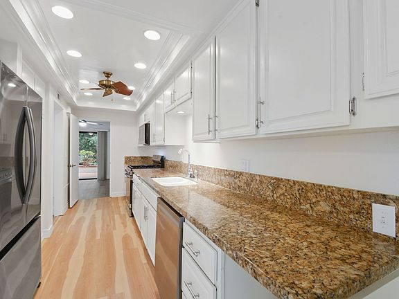 Newly replaced balconyNew garage door openerUpstairs primary suiteCompletely refreshed kitchenFreshly painted interiorPeaceful tree viewsPrivate gated entry