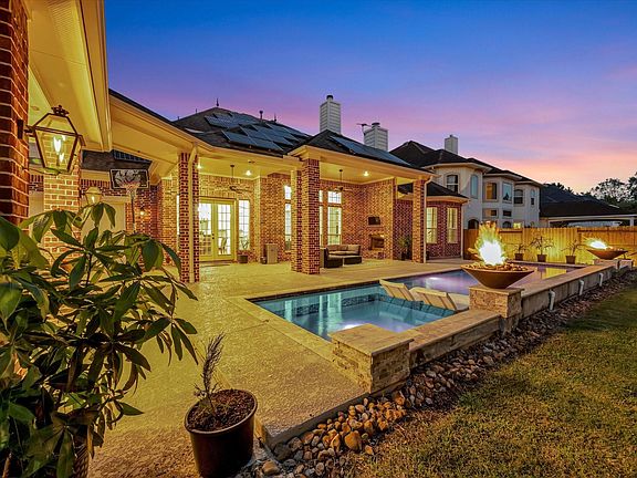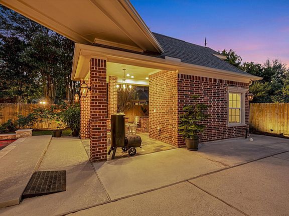 Impeccable Creole French architecture and charm welcome you to this stunning Bay Oaks home. Grand double door entry w gas lanterns leads to a soaring foyer flanked by an impressive study and formal dining. Elegant moldings, chandelier lighting, and wood flooring flow into the two-story Great Room with a fireplace. Open living area connects to island kitchen, morning room w French doors and chef's desk, opens to patio and pool. There's a generous laundry utility room and a Mud Room space. Primary suite on main level has tray ceiling, and a window all to the backyard oasis. Bath offers dual vanities, a soaking tub and a large separate shower. The second level boasts three bedrooms, two baths, and an open gameroom. Outdoor oasis includes covered patio, sparkling pool and spa, outdoor kitchen, fireplace, and pool house with loft space and full bath with shower and changing area. Four-car tandem garage, gated driveway. This is one of the "youngest Bay Oaks homes" constructed in 2014.