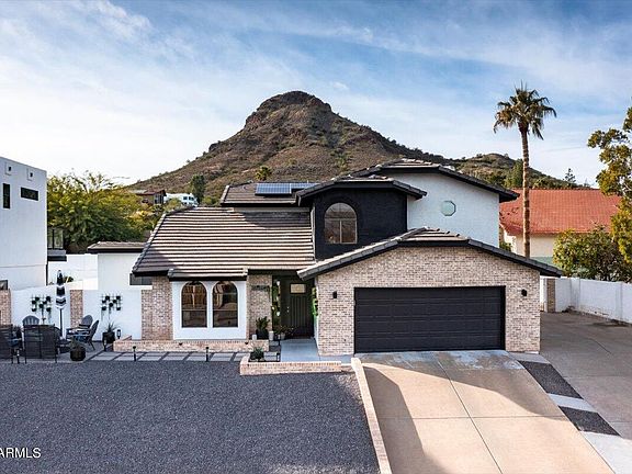 Amazing views await you at this beautifully updated home on the east side of Lookout Mountain. Enjoy amazing sunsets from the primary bedroom balcony and city-light views from your front patio. The home features 3 bedrooms plus a den/office, 2.5 baths. and an open and flowing floor plan. The kitchen and entertaining spaces overlook the pool and backyard. The updated primary suite features a soaking tub, custom shower, and large balcony with views of Lookout Mountain. Add'l bedrooms and baths have also been updated and offer valley views. The backyard is designed for entertaining with resurfaced PebbleTec pool and all new equipment, custom landscape lighting and pool room perfect for bar, games, or storage. Owned/Paid Off Tesla Solar. All this and easy access to all areas of The Valley