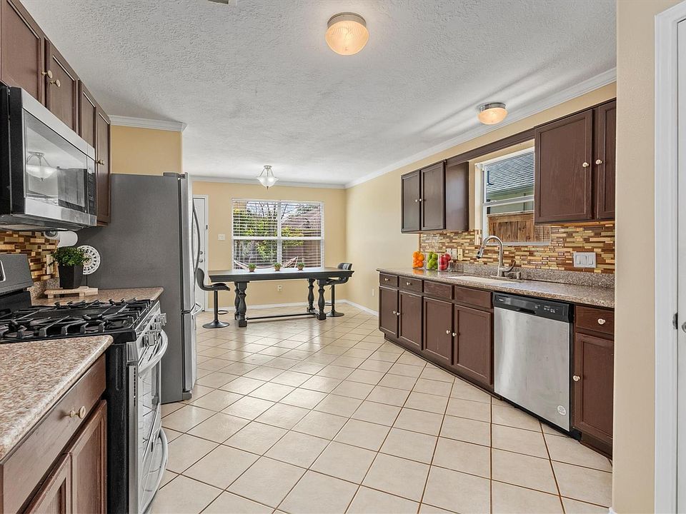 Welcome to 15026 Sunset Creek Drive in Humble! Come explore this beautiful, well-maintained home situated on a desirable corner lot in Sunset Ridge. Featuring 4 spacious bedrooms, 2.5 bathrooms, and an open-concept living and dining area perfect for entertaining. Oversized primary suite with two closets for extra storage. The secondary bedrooms are generously sized, offering plenty of space for family, guests, or a home office. Step outside to a large backyard complete with a huge extended patio, ideal for entertaining, grilling, or relaxing under the shade of mature trees. There’s also an extended concrete path along the side of the home, offering added flexibility for storage or access. Conveniently located near shopping, dining, schools, and major highways, this home combines comfort, space, and accessibility.