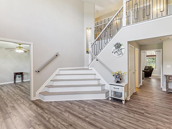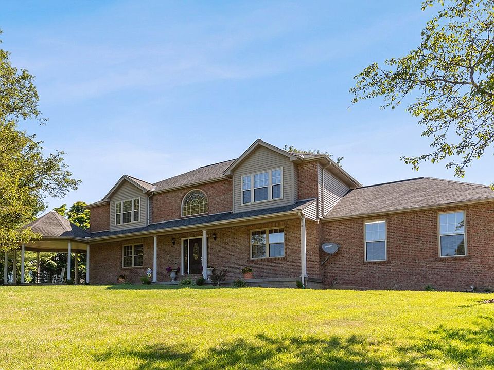 You will love this stunning 5BR, 4.5BA home with 1st floor Primary Suite, on over 2 lovely acres. Travel back a long gravel driveway & you'll be welcomed by a new leaded glass front door & huge porch with a gazebo. Freshly painted interior & new flooring make this home feel like new. Amazing white Kitchen w/ granite counters, walk-in pantry. Walkout to a sizable deck overlooking the peaceful yard. Ensuite BR on the 1st floor can be used as the Primary or MIL/guest suite. 2 of the 4 Bedrooms on the 2nd floor are Ensuites. All have new carpeting. Beautiful LVP flooring throughout the first floor and all 5 Baths. Gas fireplace and built in shelving in the 2 story Great Room are a bonus. The enormous walkout Lower Level has been partially finished with framing, electric, drywall & a finished full Bathroom, + a wet bar area roughed-in. Just add ceilings, flooring, trim & bar fixtures. Bring the pool table & XL TV! There is a room that can become a 6th BR, Craft Room, Workshop, etc. Plenty of storage in addition! Property has been surveyed and staked. Mature trees, lovely yard, room for a pool, tennis courts, pets, playset, and more. In Beighle Oaks Development. City water, no cistern.
