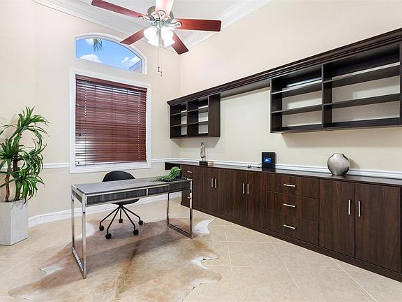 Amazing opportunity to live on the water in the top 24hr guard gated development of Riverstone. This 1 story home has a great open floor plan that features close to 3,600 sq ft with 5bed/4bath, high ceilings, big master bedroom with his/her closets, wet bar, and more. This house is pristine, freshly painted, tile & laminate floors, spacious main living areas with ready to go kitchen, office & closet built-ins for you to move in. House comes with hurricane accordion shutters, 3 car garage, private acre backyard with great lake views, updated lagoon pool with river rock fountain, & bbq station for all your entertaining. Low hoa fees, walking distance to tennis courts/playground.