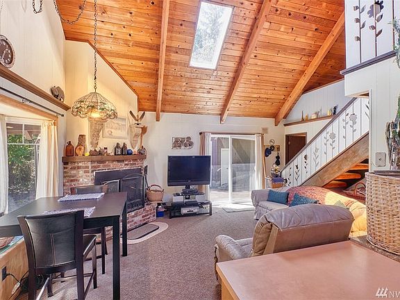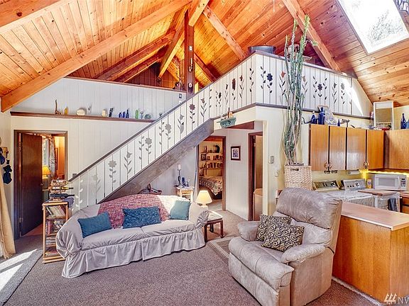 Cute chalet style cabin tucked away on a quiet cul-de-sac in Surfside Estates at a price you can't afford to ignore. Open plan living space with 2 beds/1 bath and an upstairs loft. Beautiful old cedar beams and a brick fireplace. 748 sqft garage has water, 110/220 power and a pellet stove. Surrounded by evergreens that feels like you are living in a forest, but the beach & golf course are just blocks away. Monthly HOA dues include water & a trash/recycling center. Grocery/gas 5 mins away in OP.