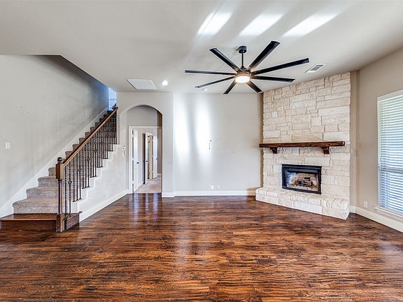 This impressive 4-bedroom, 3-bath Devonshire Village home blends luxury and comfort with multiple living and dining areas, a dedicated office, and elegant hardwood floors, tile, and granite countertops. The open floor plan features a gourmet kitchen with stainless steel appliances and a large granite island, plus a cozy den with a stone fireplace. The primary suite offers a sitting area, spa-like bath, and walk-in closet. Upstairs includes a media room and game room, ideal for entertaining. Outside, enjoy a covered patio and access to community pools, trails, fishing ponds, playgrounds, and more. This home is perfect for both entertaining and everyday living.