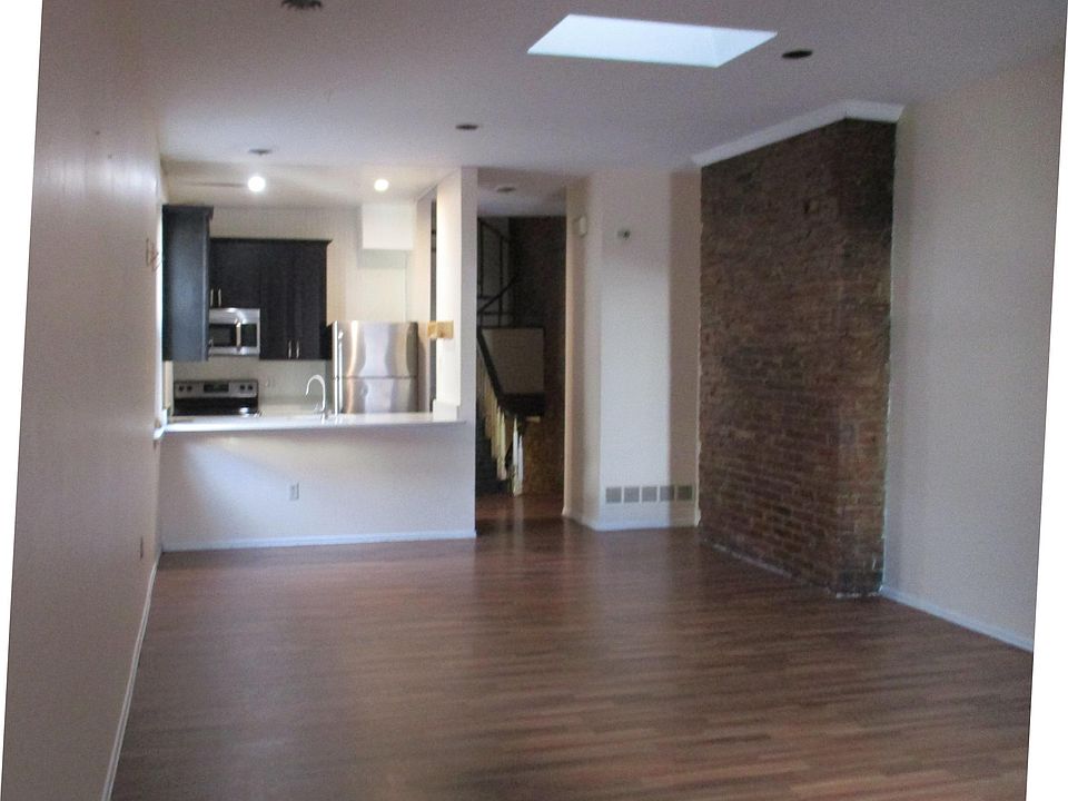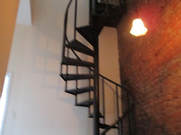 A newly renovated apartment that mixes the original detail of the walnut stair railings, exposed brick with modern finishes in the floors, kitchen and bath. At 1300 square feet, the apartment is large, with an open plan living, dining and kitchen. The living room has a working fireplace. The new kitchen has dark cabinets, white quartz counter tops and stainless steel appliances. Both bedrooms are large; one on the 2nd floor is reached via a spiral staircase. The bathroom features a vibrant granite countertop. Furnace, AC and water heater are new and energy efficient. Pets are allowed with an additional deposit and discussion with the landlord. Tenant pays gas and electric. Landlord pays water and sewer.