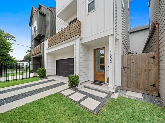 Modern, barely-lived-in home just minutes from Downtown Houston! This like-new 3 bed, 3.5 bath property offers a spacious, open layout with clean finishes, abundant natural light, and each bedroom featuring its own en-suite bath, perfect for roommates or guests. Enjoy morning coffee or city views from your private balcony, and host with ease in the fenced side yard. Ideal for professionals seeking a low-maintenance lifestyle with style and function. Located in a rapidly growing area with easy access to Downtown, the Heights, Eado, and major freeways. Quick commute to the Medical Center and nearby dining, breweries, parks, and more. No HOA and never flooded. Whether you’re a first-time buyer or looking to be closer to Houston’s heartbeat, this home offers the perfect blend of convenience, comfort, and value! Schedule your private tour today!