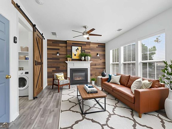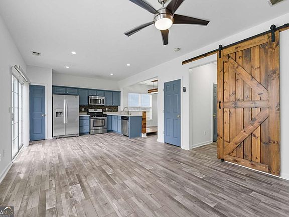 Stylish barn doorPrivate fenced backyardWood accent detailsStainless steel appliancesLuxury lvp flooringQuartz countertopsVaulted ceiling