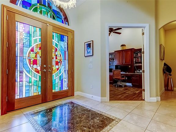 Welcome to this stunning custom-built home in the gated community of Grey Hawk. This beautiful 3,111 sq. ft. single floor home offers 3 large bedrooms, 3 full bathrooms, office, and a 3-car garage. Perfectly situated on a large conservation lot with pond views, this residence combines luxury and comfort with thoughtful details throughout. Inside, you’ll find an open and elegant floor plan featuring a formal living room, formal dining room, and a dedicated office with built-in desk space. The gourmet kitchen flows seamlessly into the main living areas, ideal for both entertaining and everyday living. Extra features include a new roof (2024), wood floors in office and family room, a central vacuum system, water softener, electric fireplace, and a smart thermostat for modern convenience. Step outside to your private retreat — a screened and covered lanai with a saltwater pool, newer propane-heated spa with new filter, and a fully equipped outdoor kitchen. Large green space for sports, kids or pets. This space is designed for year-round enjoyment and relaxation. Grey Hawk offers amenities including a community tennis court, playground, dock, and fishing on scenic Lake Polo. With its blend of elegance, functionality, and a prime location, this home is a must-see! Close to restaurants, shopping, entertainment, hospitals, and a short ride to beaches, airports, highways, and down town Tampa.