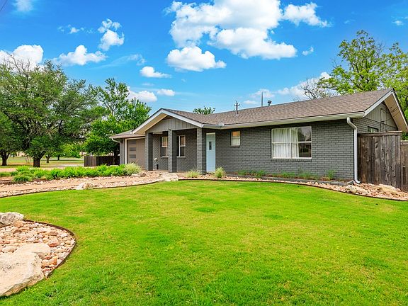 Charming Contemporary Brick Home with Private Backyard Oasis. Welcome to this beautifully maintained 2-bedroom, 2-bath, 1,355 sq ft home of comfortable living space. Built in 1980, this contemporary-style brick home blends timeless character with modern touches throughout. Step inside to an open concept living, dining, and kitchen area — perfect for both everyday living and entertaining. The kitchen features granite countertops, matching the granite countertops in both bathrooms. The primary suite includes an en-suite bath, while the second bedroom is conveniently located near a full hall bath. A separate office provides a perfect space for working from home or creative projects, and the laundry room is smartly placed off the kitchen near the attached garage. Outside, enjoy a custom-designed private backyard, complete with mature trees, a covered patio, and a fireplace — ideal for relaxing evenings or weekend gatherings. Additionally, this property holds a Short-Term Rental (STR)permit, offering an excellent investment opportunity if desired(currently not being rented). Priced below the Gillespie County Appraisal District value, this home presents incredible value intoday's market