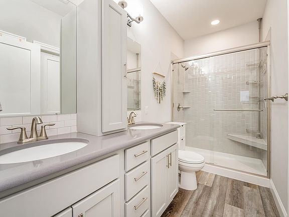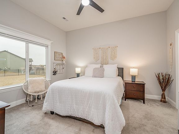 This home was built three years ago and shows like a Model Home! Andover schools. Three bedrooms and two baths split bedroom floor plan. (See photos) THREE Car garage! This home is full of LIGHT! Everything is bright and sparkling clean, too! Upgraded Storm shelter by Protection Shelters ($5,288,79) Enjoy your morning coffee in the Screened in Sun Porch added to the home ($6,571.10) Kitchen appliances include a GAS RANGE, built in Stainless Steel Microwave and Dishwasher. Quartz countertops in the kitchen along with a separate walk in Pantry! One unique feature of this home is the separate laundry room with shelves and hanging space. The white Kitchen cabinets are timeless! Lots of storage space. Primary bedroom ensuite has two sinks, tiled shower and a large walk in closet. Mechanicals is in a separate large room in the garage with extra space for storage.
