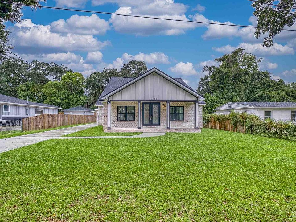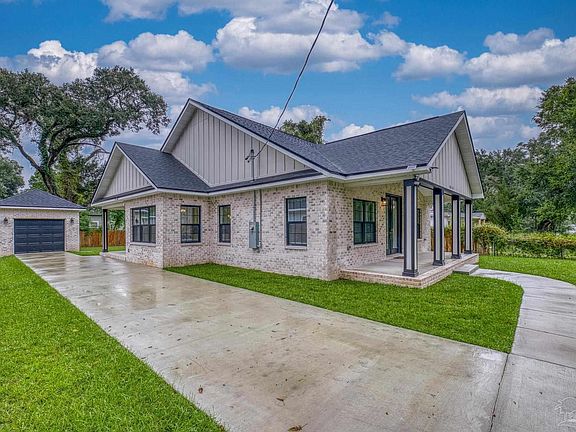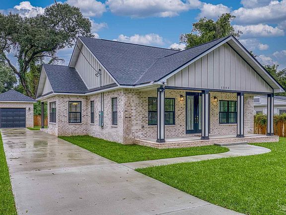 Discover this stunning 2024-built brick Craftsman home, featuring 3 bedrooms, 2.5 bathrooms, and a detached 1-car garage on a .21-acre lot with no HOA—perfect for homeowners or investors. Just minutes from downtown Pensacola, enjoy easy access to restaurants, shopping, and local attractions. This home is being sold turn-key and fully furnished, making it a perfect move-in ready opportunity or investment rental. Step onto the large covered front porch and admire the well-manicured lawn. Inside, wide-plank LVP flooring, bright neutral paint, and abundant natural light create a welcoming and modern atmosphere. The living room boasts a tray ceiling, enhancing the open and airy feel. The open-concept kitchen features stainless steel appliances, modern fixtures, a large island with sink and breakfast bar, and an eat-in dining area—ideal for everyday meals or entertaining. Retreat to the primary suite, complete with a tray ceiling, modern lighting, a large walk-in closet, and a luxurious primary bathroom with granite countertops, double sinks, and a glass-enclosed walk-in tile shower. Both guest bedrooms include walk-in closets for added storage. Convenient indoor laundry adds practicality. Relax in the lush backyard with a covered patio, perfect for outdoor living or entertaining. Additional features include a transferrable roof warranty, making this move-in ready home both stylish and low-maintenance. This brick Craftsman home near downtown Pensacola offers modern living, charm, and strong investment potential—all in one beautifully furnished, turnkey package.
