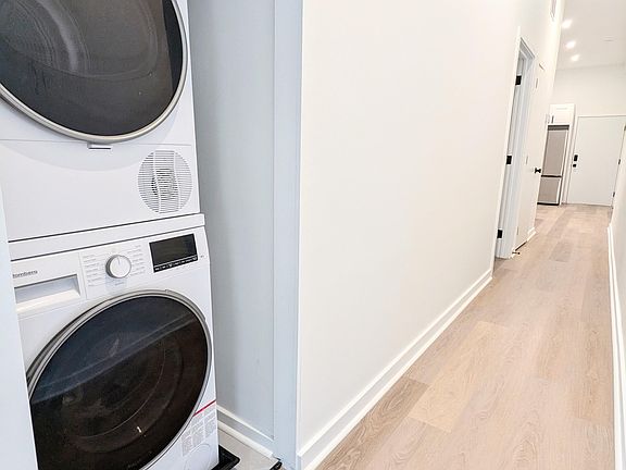 Don't miss out on this modern, thoughtfully designed apartment in Brewerytown - Philadelphia's hottest new neighborhood! Renovated just one year ago. Enter through the front door and walk up to the second floor entrance. The entryway opens into a spacious & bright kitchen with luxurious GE appliances, quartz counter-tops, garbage disposal with air switch, dishwasher, and ample amounts of cabinet space. The kitchen flows into the open concept living and dining areas. Adjacent to the living area you'll find a coat/storage closet and full bathroom with soaking tub. Moving to the rear, you'll find the first of two bedrooms with a large french door closet. The hallways leads to the in-unit laundry area, utility closets, and the the primary bedroom. This spacious suite has windows on two sides, another large double-door closet, and a private bathroom with a walk-in glass shower. The apartment includes a state-of-the-art video intercom, LED anti-fog bathroom mirrors, luxury vinyl flooring with sound deadening backing, and four-function shower columns with preset temperature gauge. The building has a huge common roof deck with amazing city skyline views and deck furniture great for entertaining or lounging. Ask for an application now, this unit won't last long! Promotional lease rate with renewal option after 6 months. First, last, and security deposit required for move-in plust a $250 move-in fee. Flat water fee of $65/month. Tenant pays electric and cable/internet directly. Application fee of $55 covers background and credit checks.
