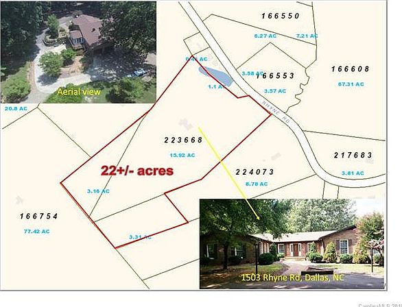 Properties like this one don't come around often. Private home on 22+ acres. 3 bed, 2.5 bath, Brick single level w/ finished basement and detached 2 story workshop. Upper shop is set up for woodworking. 4 Garage bays in total on property. Enjoy the deer, the blueberries & figs, and the beautiful paths & flower gardens. Main level has been remodeled with hardwood flooring, office area, glamorous master bedroom & on-suite luxury bath. A new state-of-the-art culinary dream kitchen features designer gray cabinetry and Silestone Quartz counters, large center island, 2 raised dishwashers, ice maker, separate prep sink & main basin, cabinets with slow close drawers & doors, European hidden hinges, pot filler over Gas Cooktop, Electrolux Double Wall Oven, Electrolux Icon Column Refrigerator & Freezer combo set. Mountainous feel in this wooded retreat. Just 22 miles to Charlotte, 10 miles to Gastonia. Located in Dallas, NC. Creek and pond access on property. Very unique, well cared for home.