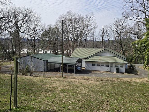 Charming home featuring Luxury Vinyl Plank flooring, granite Kitchen counter tops, Natural gas range, wainscoting walls and propane fueled fireplace. 3/1 residence with Detached double carport, shop with wood burning heater, toilet and utility sink. Second out-building is multi-functional and includes work bench and storage with rollup door access. U shape paved Driveway wraps around back of house making it easy for boat trailering and storage. In addition to being well suited as a primary family residence, this property is located within minutes of Lake Guntersville making it an ideal sportsman's retreat as well.