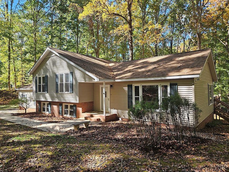 This charming home is situated on a beautiful wooded 1.25 acre lot, 5 minutes from downtown Farmville. Each morning relax on the deck & enjoy your coffee as you watch squirrels & other wild life play in the woods. The tri-level home offers a modern kitchen with beautiful cabinets, dining area & living room on the main level. There is a spacious deck off the dining area & meals can be enjoyed with beautiful views of outdoors. The upper level has 3 bedrooms & 2 baths which includes a private bath off the primary bedroom. The lower level has a large family/play room with a fire place & bay window showing the wooded back yard. There is an extra room on the lower level that may be used as an office, play room or storage area. The laundry area is on the lower level & includes a 1/2 bath. This home also offers a large garage with room for storage. This is a perfect home for a busy family who desires to be close to schools & town. This home should be seen to be appreciated.