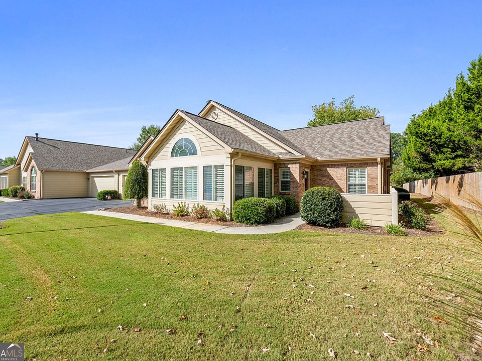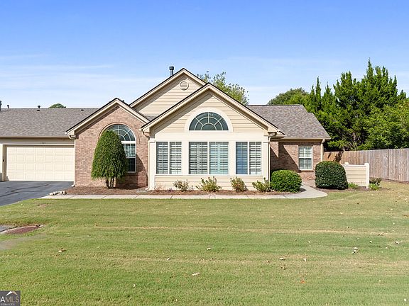 Don't miss this rare opportunity to purchase in the sought after Silver Summit active adult community (Age 55+) in Conyers! This lovely one-owner end-unit residence features two bedrooms and two bathrooms. Beautiful plantation shutters on all windows. Foyer entry with hardwood floor. Great room with vaulted ceiling, chandelier lighting and cozy fireplace with gas logs. Front sunroom with vaulted ceiling and French doors could double as a third bedroom, office, exercise room or private den. Dining area. Kitchen with double pantries and stainless steel appliances (refrigerator included!). Laundry room with washer, dryer and walk-in closet. Primary bedroom suite with vaulted ceiling, ceiling fan and palladium window. Primary bath includes a premium walk-in jetted tub and large walk-in closet. Guest bedroom with vaulted ceiling, palladium window and walk-in closet. Guest bathroom with shower/tub combination. Two-car garage. Community includes a swimming pool, street lights, sidewalks, and a clubhouse with fitness equipment. Association fee takes care of so much that you can truly enjoy your new home with comfort and peace of mind; dues cover water, trash pickup, sewer, pest control, and community maintenance!