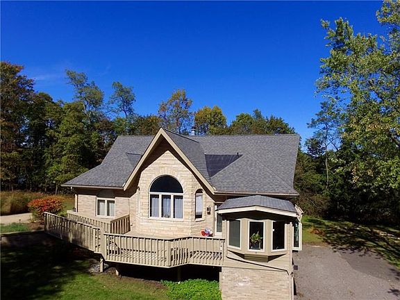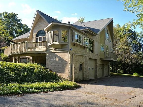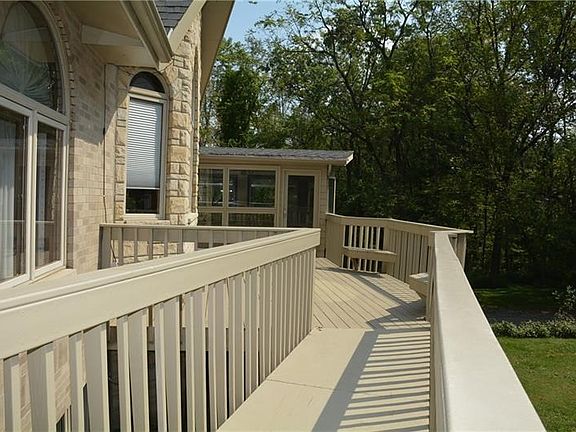 One owner custom thoughtfully stick built brick and custom hewn stone (not veneer) carriage / manor patio style home discreetly tucked beyond sight via private lane. Personalize your own mini-estate house discreetly tucked beyond sight in wooded surroundings via private drive. Located directly east-west for optimal use of natural lighting on rare mostly level total of 3 acres. This quiet and serene wooded perimeter lot is on one of highest Allegheny County elevations (without a steep drive entry!) near all highways (I79, I279, I80, Pa turnpike) within 30 minutes of greater Pittsburgh area events, jobs, sites: International airport, Oakland, Saxonburg, Butler, and Beaver. Open the solid mahogany door to an elegant Paracca italian marble floor great room entry that soars 20+ feet with 2 sided fireplace greeting you home. Relax serenely in Master Bath Jacuzzi Jet Tub and commercial Steammist shower with teak benches. Two first floor bedrooms and full baths! Rear stair and possible separate entrance from sun room to two second floor bedrooms. Floor and under kitchen island lighting for nightly snack hunting. Many areas for solitude or social activities: Large dining room, sunroom, great room with fireplace and dry, warm LL oak trimmed berber carpeted family room for bumper pool /game table and TV, plus large deck and steel beam supported walkway. Play, dine or meet in the sun room with garden windows & radiant floor heat. Enjoy heated garage with water hookups, oversized garage bay and door stores 22' RV or large and high vehicle. Storage room off garage bay is same size as sunroom about 20 foot high. Room for 2 floor elevator from kitchen to garage, 2d floor dormer bathroom, and addition near office and guest bath. This is a unique opportunity in NA school district near major highways and key areas of interest including #1 Franklin Elementary school.