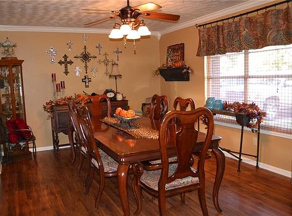 Lovely home with lots of charm and special features. Gourmet kitchen features granite countertops, new stainless appliances-five burner gas stove, dishwasher and built-in microwave . Three eating areas- Large formal dining, breakfast nook and eating bar. Open floor plan . Back yard patio includes Pergola, fire pit, landscaped yard and water well. Decorative paint colors and lighting. Come make this your home just in time for the holidays!