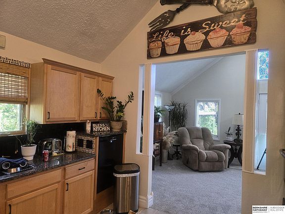 Super cool /unique ranch 2+ bedrooms, Dream33 X 23 - 3-car garage! This home stands out with its versatile attached guest apartment or home office, complete with a kitchenette & ¾ bath—perfect for extended family, visitors, or work-from-home. Step inside to be welcomed by sunny vaulted ceilings, striking windows that fill the living room with natural light. CUSTOM kitchen is a cook’s delight, granite countertops, built-in cooktop, newer appliances included, even stackable washer & dryer. Brand-new carpet & ceramic tile enhance the updated feel. Dining area features new ceramic tile, secluded deck w/waterfall provides a peaceful retreat. Primary STE has ¾ bath & main-floor laundry. Upstairs. Pull-down loft storage. Finished walk out lower level offers another kitchenette, dine space, large rec room,2nd bedroom ¾ bath. Outside, you’ll love the gazebo, mature landscaping, perfect for entertaining! Best of all, close to the DQ! schools, & HWY 75 & OFUTT AFB! Something for everyone!!