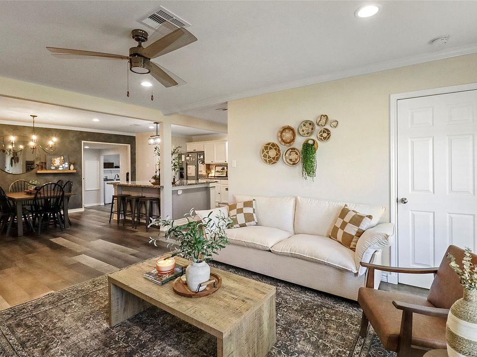 Magazine worthy showstopper awaits you right in the heart of Freeport. This home has been meticulously renovated and designed with a modern, yet classic feel. The home features 4 bedrooms and 2 baths, with an extra guest suite with a half bath detached from the main house. The primary bedroom is set up with an ensuite bathroom with everything you need for relaxing and unwinding at the end of the day, including a gorgeous soaking tub. The kitchen is setup for cooking and entertaining galore. It has ample counter space with an extra large island with bar seating. The home also has 2 separate living rooms/dens/family rooms. Outdoors you will find a large back porch along with a pergola and seating area. A new roof was installed 08/25. The home sits on a corner lot. Come see this beauty ASAP!